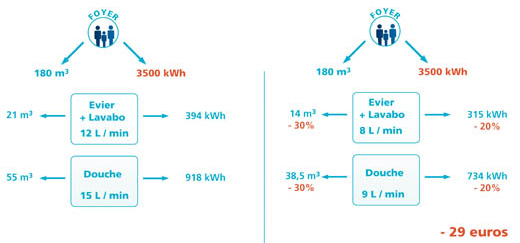 En limitant votre consommation d’eau chaude sanitaire, vous réduisez l’énergie nécessaire pour chauffer l’eau. Vous réalisez donc des économies sur vos factures d’eau et d’électricité.